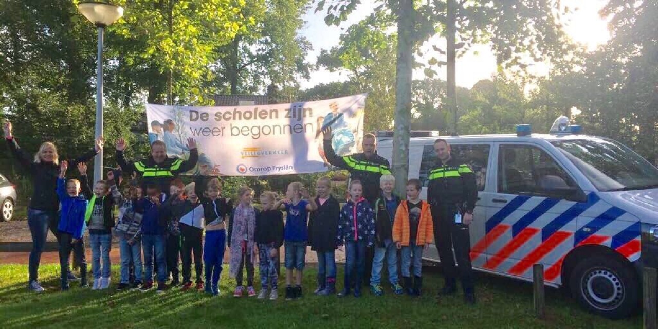 Onze school doet mee met de spandoekactie van Veilig Verkeer Nederland en Omrop Fryslân! @OmropFryslan @VeiligVerkeer