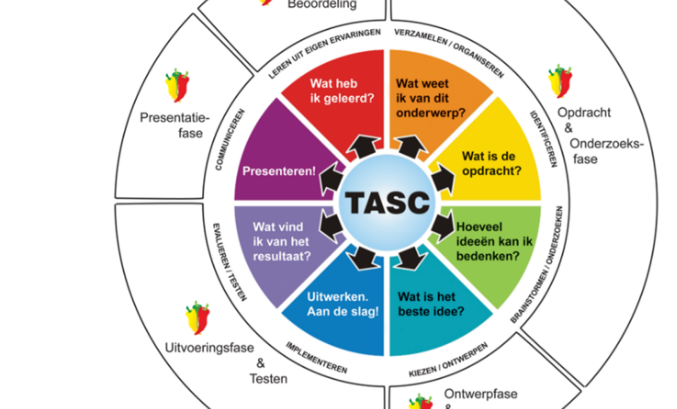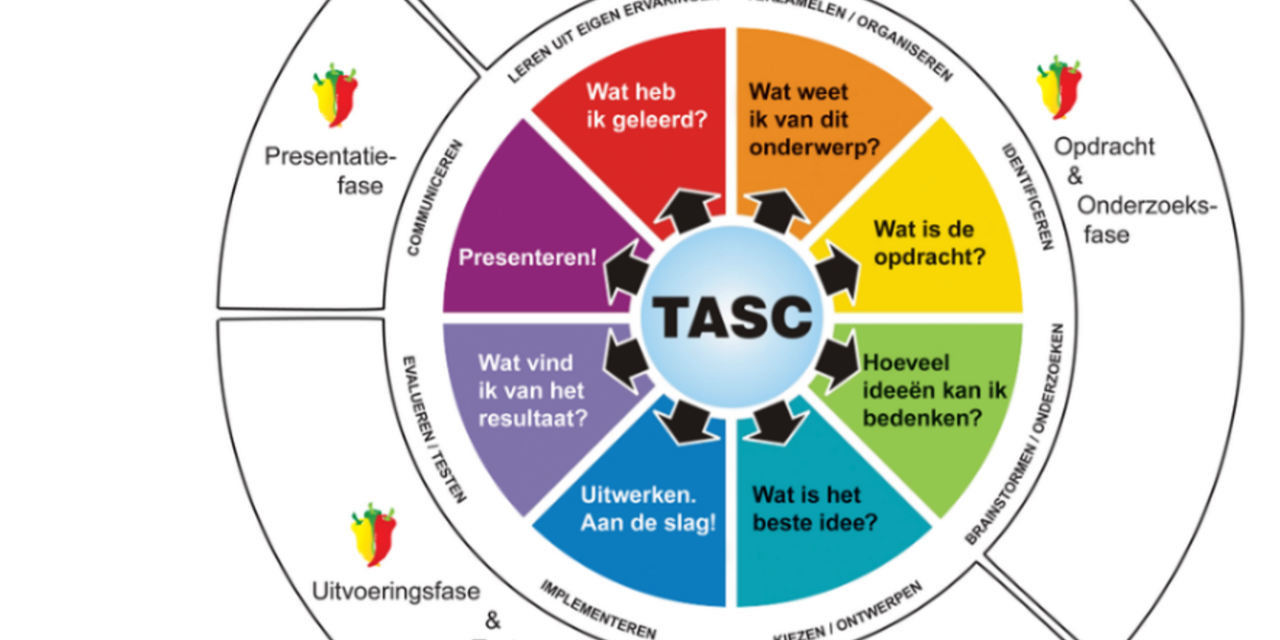In de opdrachten van de Pittige Plus Torens doorlopen de leerlingen bij elke opdracht zelfstandig alle fasen van de TASC cirkel en oefenen ze de bijbehorende vaardigheden (zie afbeelding).